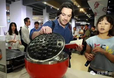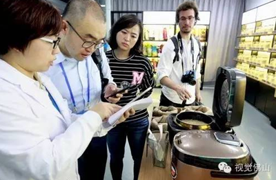 ▲在美的的产品体验中心,来自匈牙利的记者在试吃过三个电饭煲的饭后,选出了由佛山电饭煲做出来的饭,当他得知佛山产的电饭煲市场价只需两千元左右,远远低于另外两个日本电饭煲的价钱时,他开心的说:“我会更享受这顿饭。”