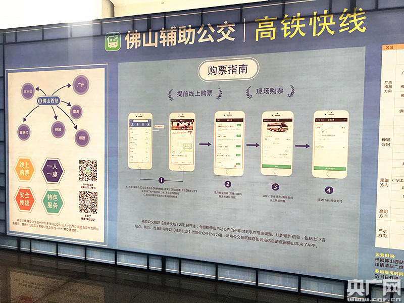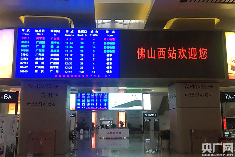 目前,佛山西站站内设有10个人工售票窗口、70台自动售取票机,引导旅客“网上购票,点上取票”。免费环站电瓶车也投入使用,方便旅客在站内走错方向时及时找到进站口。