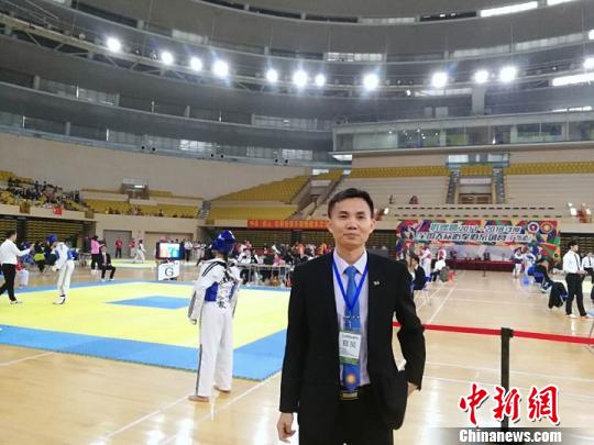 广东省跆拳道协会秘书长黄业俊接受采访 唐贵江 摄