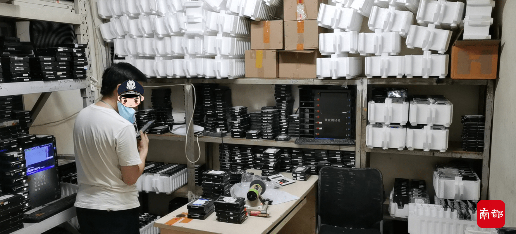 2021年7月21日拂晓,佛山公安打掉一个盘踞在广州、湛江、佛山等地,生产加工假冒数码品牌机械硬盘的犯罪团伙,抓获犯罪嫌疑人10名,总涉案金额超过3000多万元人民币。行动中共捣毁翻新硬盘加工窝点5个,查获涉嫌假冒硬盘2000余个,电脑主机5台,硬盘测试机4台。