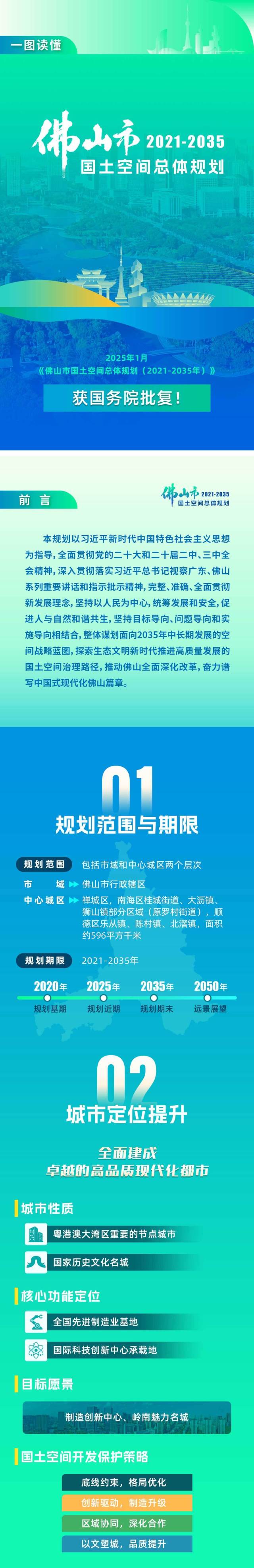 1月26日,《佛山市国土空间总体规划(2021-2035年)》(以下简称《规划》)新闻发布会在佛山市新闻发布厅举行。会上透露,《规划》已于近日获国务院批复,并介绍了八大方面内容。《规划》有何亮点?一图速览。