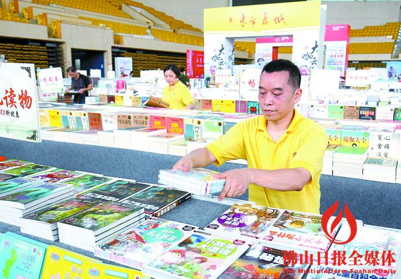 东方书城的工作人员在整理南国书香节展出的书籍。此次东方书城展出的书籍达4000多个种类。 /佛山日报记者甘建华摄