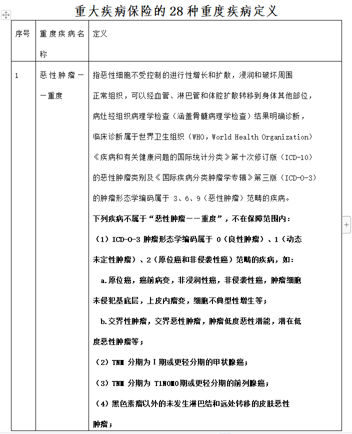 1.新增首次确诊重大疾病现金给付1万元,包括中国保险行业协会、中国医师协会联合发布的《重大疾病保险的疾病定义使用规范(2020年修订版)》中规定的全部28种重度病种;