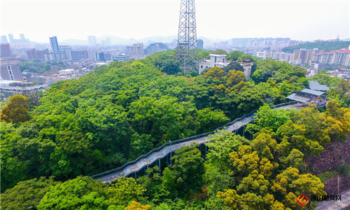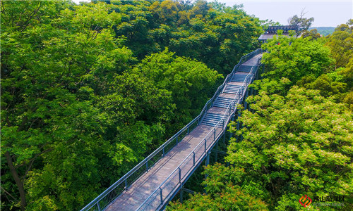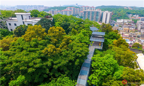 顺德“创森”的重点改造项目项目充分利用华盖山闲置的山体自然资源,顺德区和大良街道联动,建设了这条环山空中步行栈道。