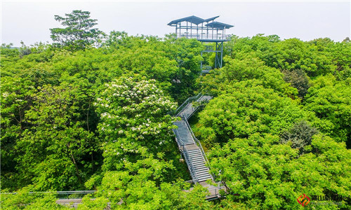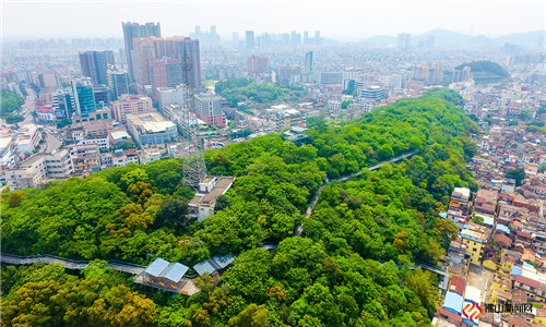 绿树葱茏,栈道“环抱”,这里是顺德大良华盖山。