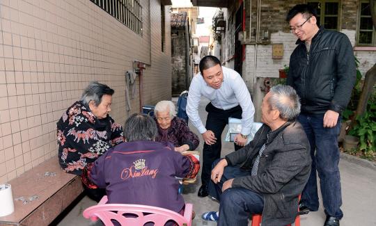 广东省佛山市南海区桂城街道驻点干部在街头巷尾和群众谈心