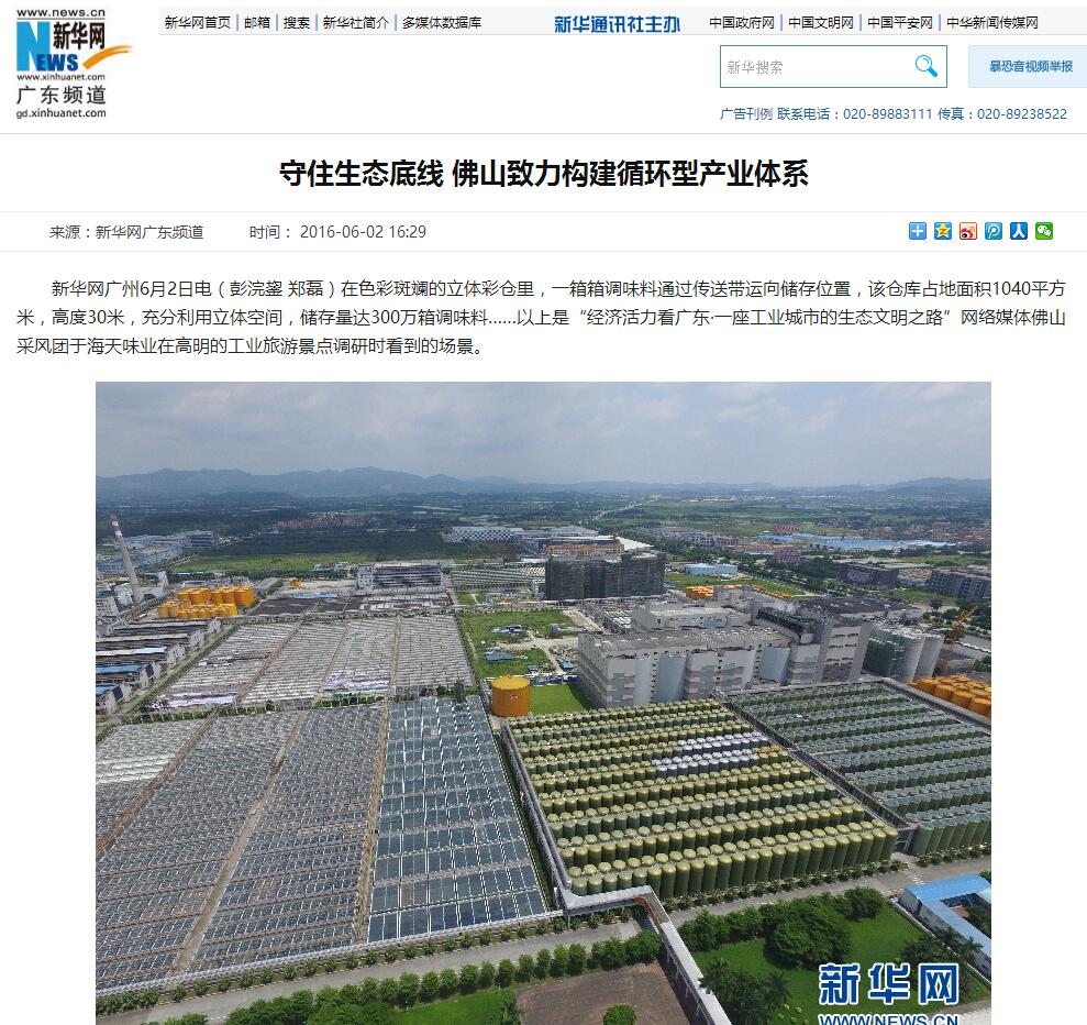 新华网广州6月2日电(彭浣鋆 郑磊)在色彩斑斓的立体彩仓里,一箱箱调味料通过传送带运向储存位置,该仓库占地面积1040平方米,高度30米,充分利用立体空间,储存量达300万箱调味料……以上是“经济活力看广东·一座工业城市的生态文明之路”网络媒体佛山采风团于海天味业在高明的工业旅游景点调研时看到的场景。