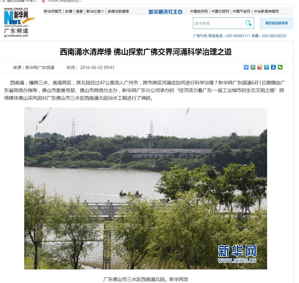 西南涌,横跨三水、南海两区,其北段经过47公里流入广州市,跨市跨区河涌应如何进行科学治理?新华网广东频道6月1日跟随由广东省网信办指导,佛山市委宣传部、佛山市网信办主办,新华网广东分公司承办的“经济活力看广东·一座工业城市的生态文明之路”网络媒体佛山采风团对广东佛山市三水区西南涌北段治水工程进行了调研。