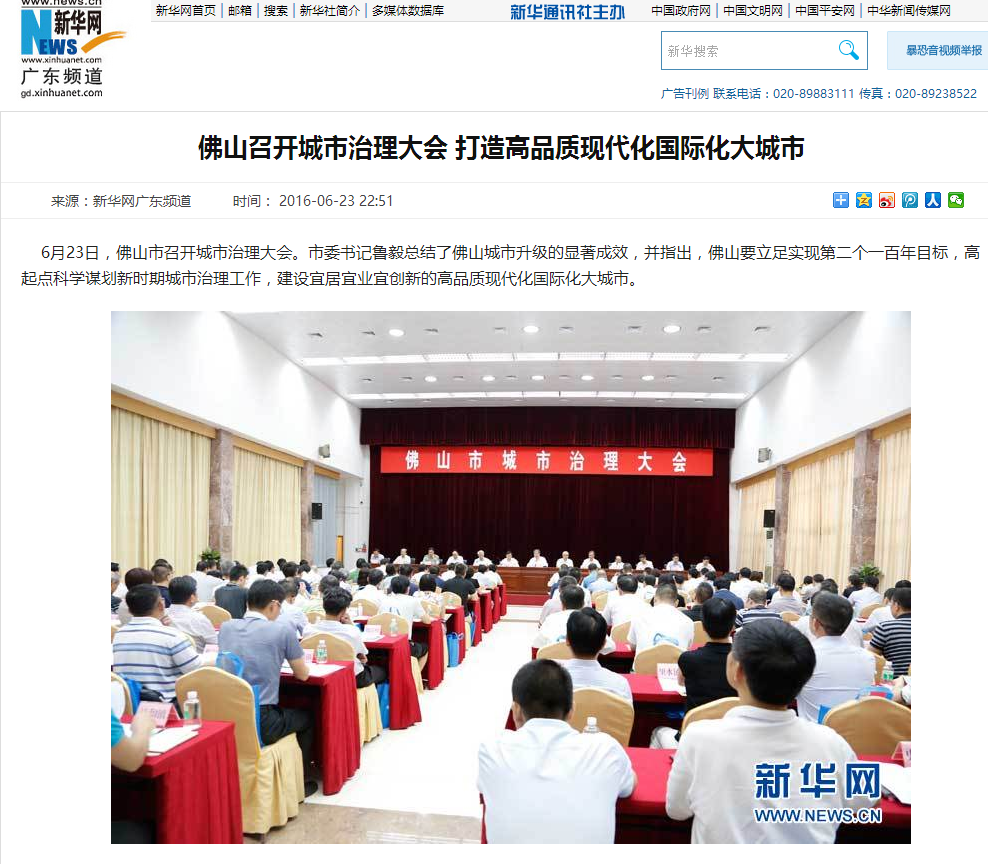 6月23日,佛山市召开城市治理大会。市委书记鲁毅总结了佛山城市升级的显著成效,并指出,佛山要立足实现第二个一百年目标,高起点科学谋划新时期城市治理工作,建设宜居宜业宜创新的高品质现代化国际化大城市。