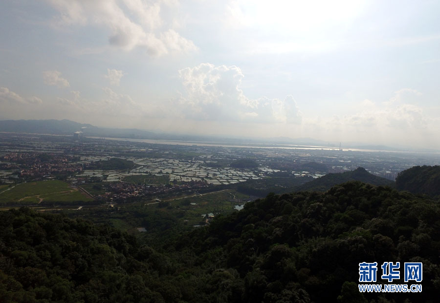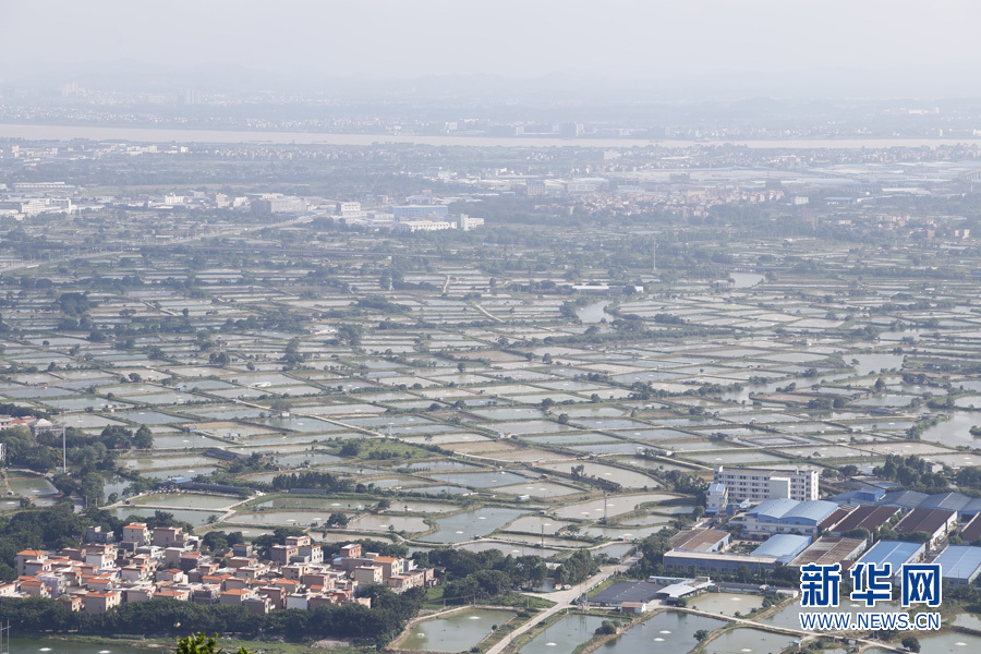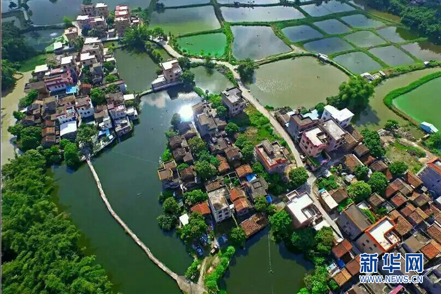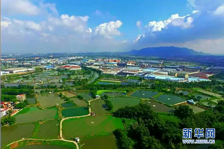 新华网无人机航拍西樵山下的桑基鱼塘。新华网 伍嘉炜摄