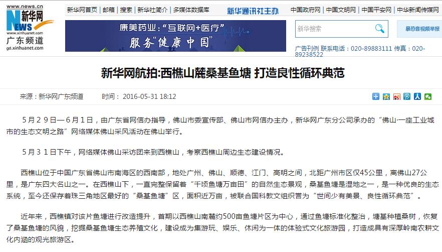 5月29日—6月1日,由广东省网信办指导,佛山市委宣传部、佛山市网信办主办,新华网广东分公司承办的“佛山·一座工业城市的生态文明之路”网络媒体佛山采风活动在佛山举行。