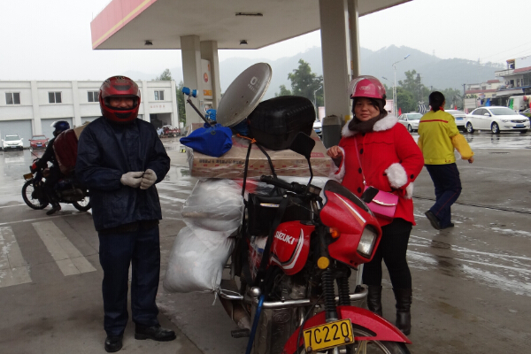 梁先生,今年43岁,天还没亮就从东莞出发回广西平南,全程400多公里,用时约10小时。今年是他们第六年骑摩托返乡。梁太太说:因为她会晕车所以只能选择骑车返乡。新年愿景:发财、身体健康。
