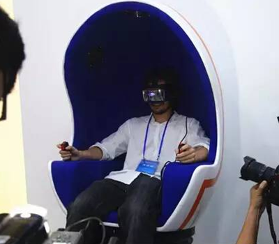 ▲来自纽约时报的记者(右)对园区企业的7D电影椅十分感兴趣,坐上体验,来自塞尔维亚的记者连忙用手机拍摄。