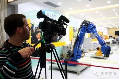他们先后来到广东工业设计城、美的集团全球创新展示中心、美的生活电器测试中心、嘉腾机器人公司等地采访,聚焦佛山创新发展。在今天上午,他们还成功“潜进”了佛山机器人的聚集地——广东智能制造示范中心,和机器人来了个“亲密接触”!