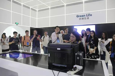 ▲在美的全球创新中心,有可以和人沟通的微波炉,你说做鱼就做鱼,做鲈鱼就给你蒸鲈鱼,引起了记者们的围观!