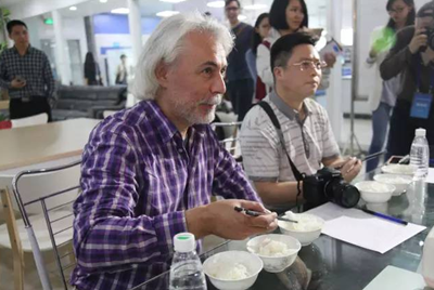 ▲在美的的产品体验中心,来自匈牙利的记者在试吃过三个电饭煲的饭后,选出了由佛山电饭煲做出来的饭,当他得知佛山产的电饭煲市场价只需两千元左右,远远低于另外两个日本电饭煲的价钱时,他开心的说:“我会更享受这顿饭。”