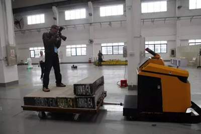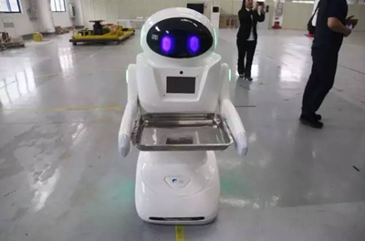 ▲除了物流用的大黄蜂机器人,嘉腾公司还有多种功能不一的产品滴!如这款小雪人机器人遇到障碍物会马上停止前进,小编偷偷走到它面前,这可爱的小机器人一下子就停下来了!