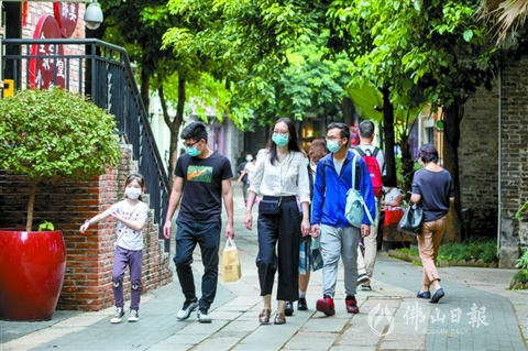 3月26日,禅城岭南天地商圈,人流量逐渐增多。 /佛山日报记者符诗贺摄