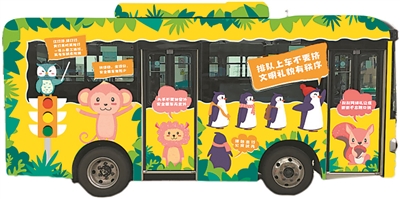 特色活动:全市公交车摆放“礼让斑马线”倡议