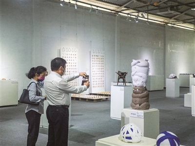 市民在“石湾杯”陶瓷展参观。/佛山日报记者刘乙丁摄