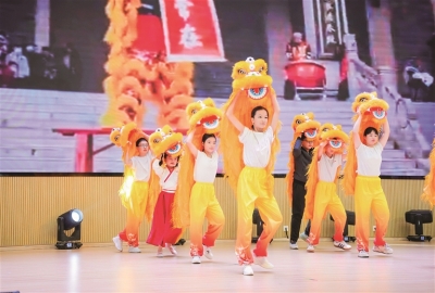 在小学专场中,同学们以童趣盎然的舞台演绎,为经典书籍注入纯真活力。其中,狮山镇狮城中学小学部《非遗年·佛山情》就上演了一场视觉与听觉的盛宴,醒狮少年在梅花桩上腾挪跳跃,手中翻飞的《非遗里的中国》与舞台上跃动的剪纸、彩灯交相辉映,将佛山传统文化的瑰丽画卷徐徐铺展。