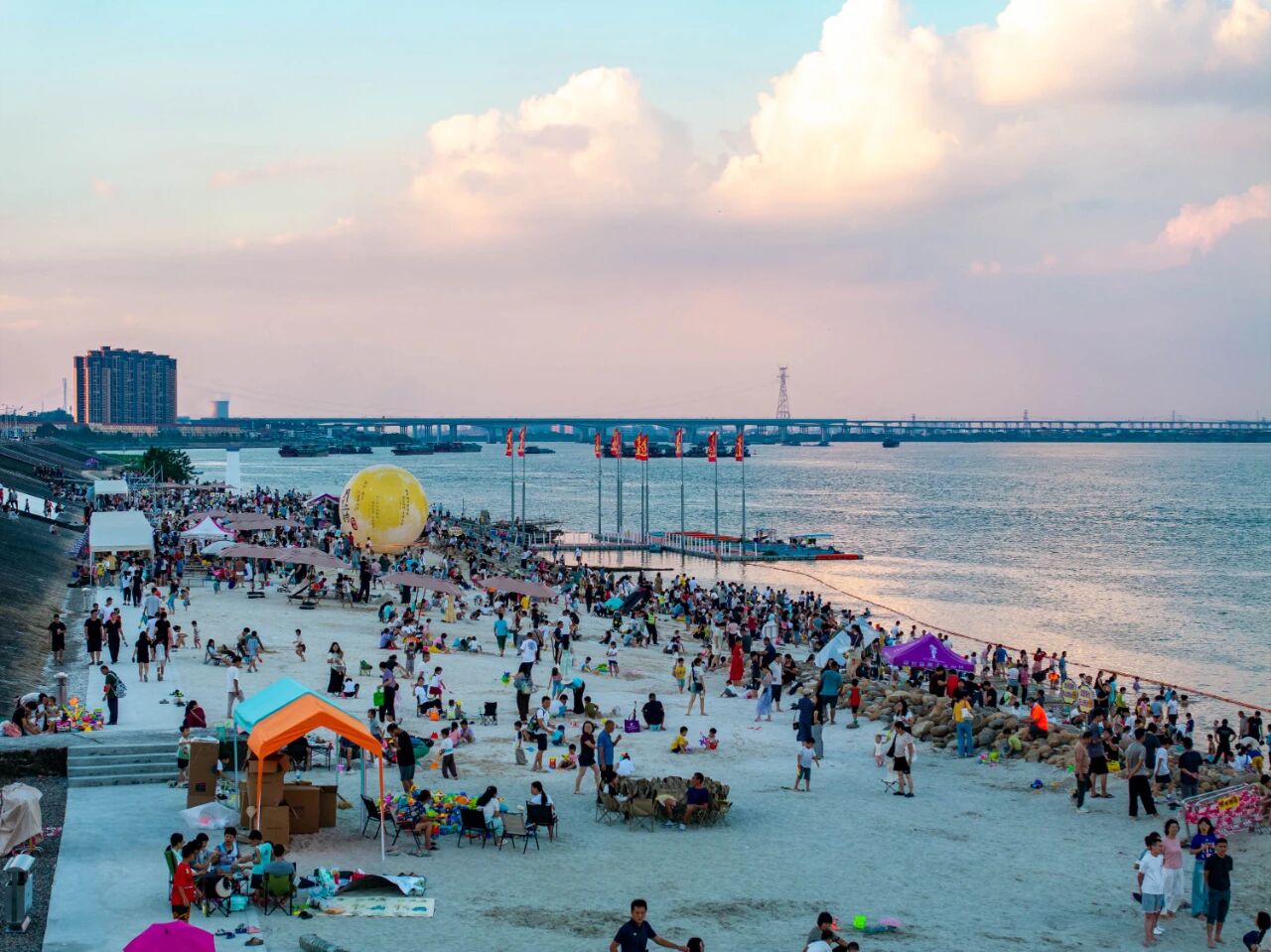 全国首个锦鲤文化街区——蘇村锦鲤文化街区以新建人工沙滩为亮点,通过举办篝火晚会、沙滩露营、音乐生活节、烟火秀等活动,累计接待游客76.2万人次。