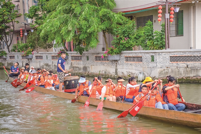 “太好玩了!我第一次扒龙船,感觉就像进行一场奇妙的冒险。我用尽全力,划得最快!”刘宸丞兴奋地说。这个周末,他和妈妈一大早就从广州赶到佛山,只为亲身体验佛山独特的传统文化项目。