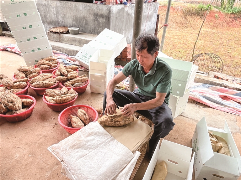 因此,黄剑平总是优先满足水井村当地葛农的卖葛需求。“去年出口粉葛约200万斤,水井村葛农只要愿意把葛卖给我,符合标准的我全都收。”黄剑平说,统一购销点可减少当地粉葛滞销,保障葛农辛勤种植后能获得合理的经济收益,从而促进合水粉葛产业可持续发展。