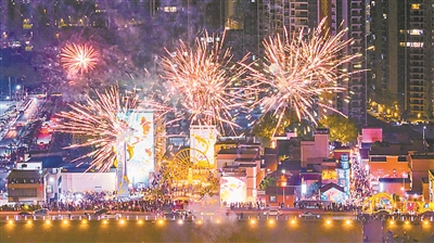 春节假期,璀璨烟花点亮高明蘇村锦鲤文化街区的夜空。摄/通讯员叶丽梅
