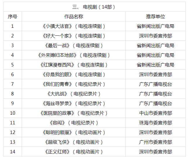 广东省第十届精神文明建设“五个一工程”评选结果公示表