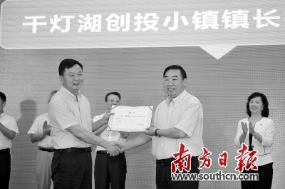 广东省人民政府原秘书长李捍东受聘为千灯湖创投小镇名誉镇长。 戴嘉信 摄