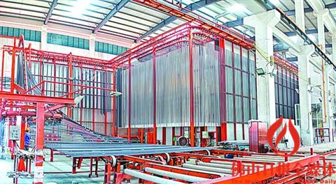 伟业铝厂引进亚洲大型全自动立式喷涂生产线,有利于产品质量升级。/企业供图