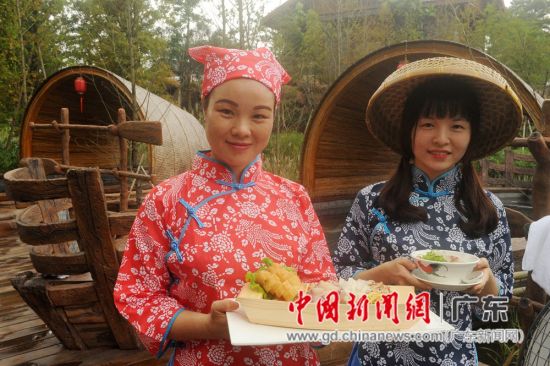 身穿渔女服饰的服务人员,按照传统秘制方法,炮制出民间特色美食“艇仔粥”供游客品尝。