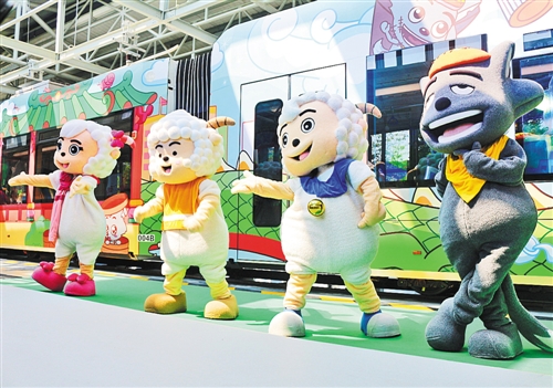 图② 广东奥飞动漫携手广州有轨电车打造的“喜羊羊广粤文化专列”。 本报记者 张建军摄