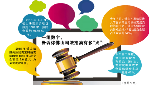 据今年7月淘宝的数据显示,佛山的司法网拍总成交量占全省一半以上,四家法院进入成交量前十。