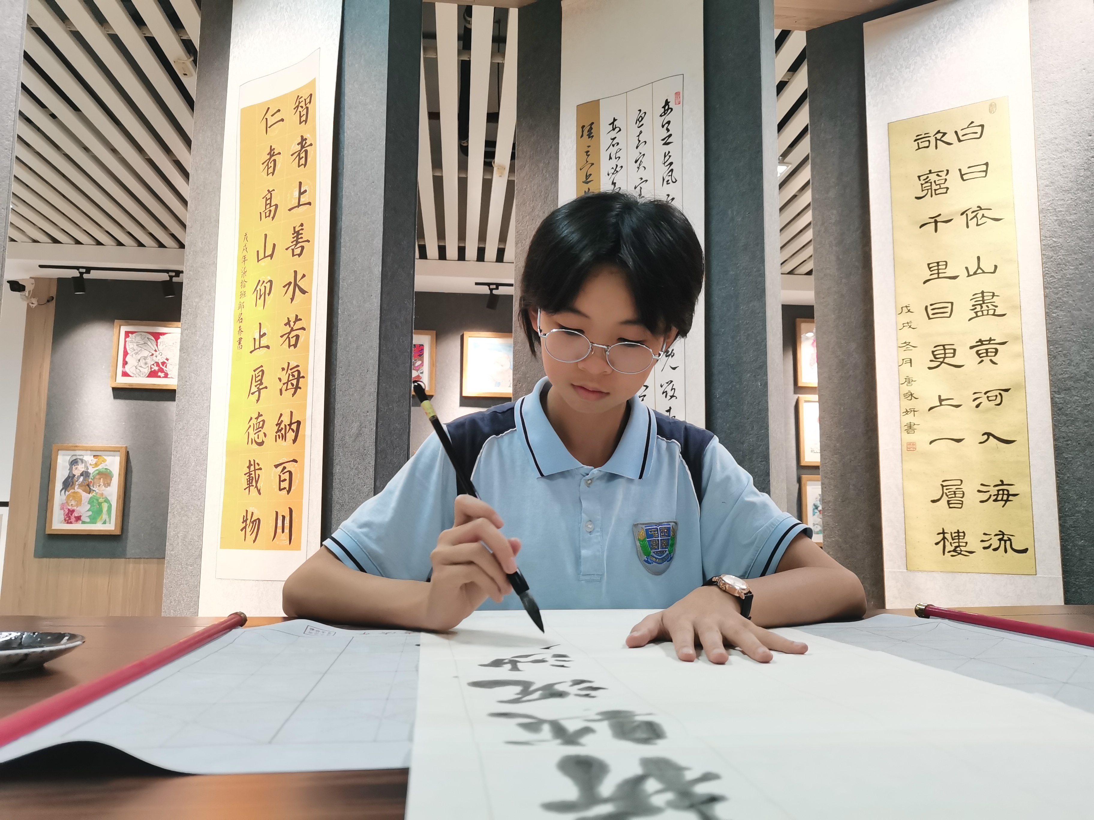 这位多才多艺的少女在艺术领域同样出色:硬笔书法六级、软笔书法九级、钢琴八级、中国舞五级……然而最让她着迷的是中华武术。“一开始是为了强身健体,后来渐渐爱上了这项运动。”谢佳菲回忆道。从六年级开始,她坚持练习武术已有三四年,从最初的长拳到后来选择更具挑战性的红缨枪。