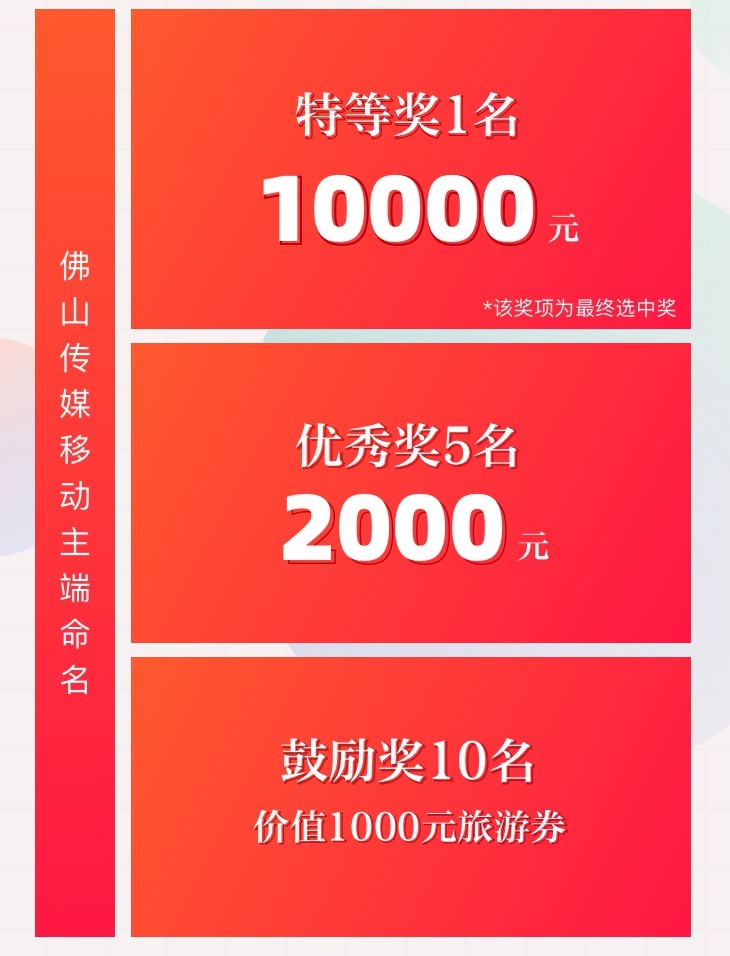 佛山传媒移动主端将深耕佛山、立足湾区、放眼全球,打造佛山最具影响力、权威性最大日活量,在全省、全国形成较大影响力和传播力移动传播主平台。一个名字最高可获一万元!佛山传媒移动主端命名征集活动正式开启,2月28日起面向全球征名!