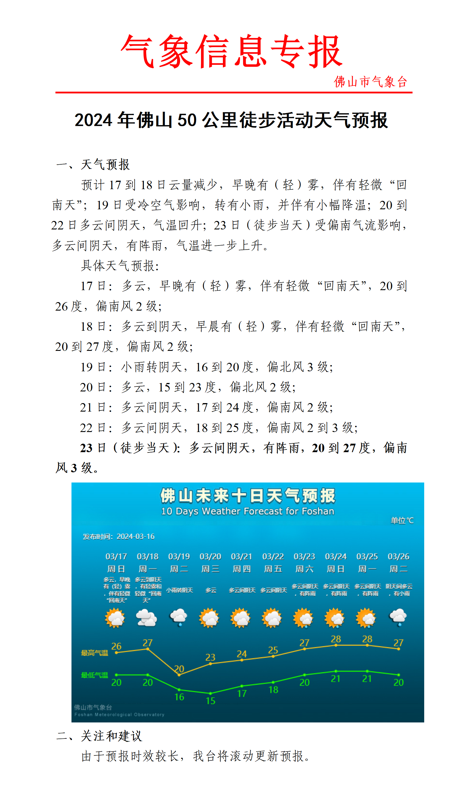温暖潮湿,雾气缠绕,3月15日夜间至16日,我市出现雨雾天气,三水西南录得最低能见度400米左右,全市五区一度挂起大雾黄色预警信号。温暖潮湿的天气模式将持续到新冷空气入粤才会画上句号。