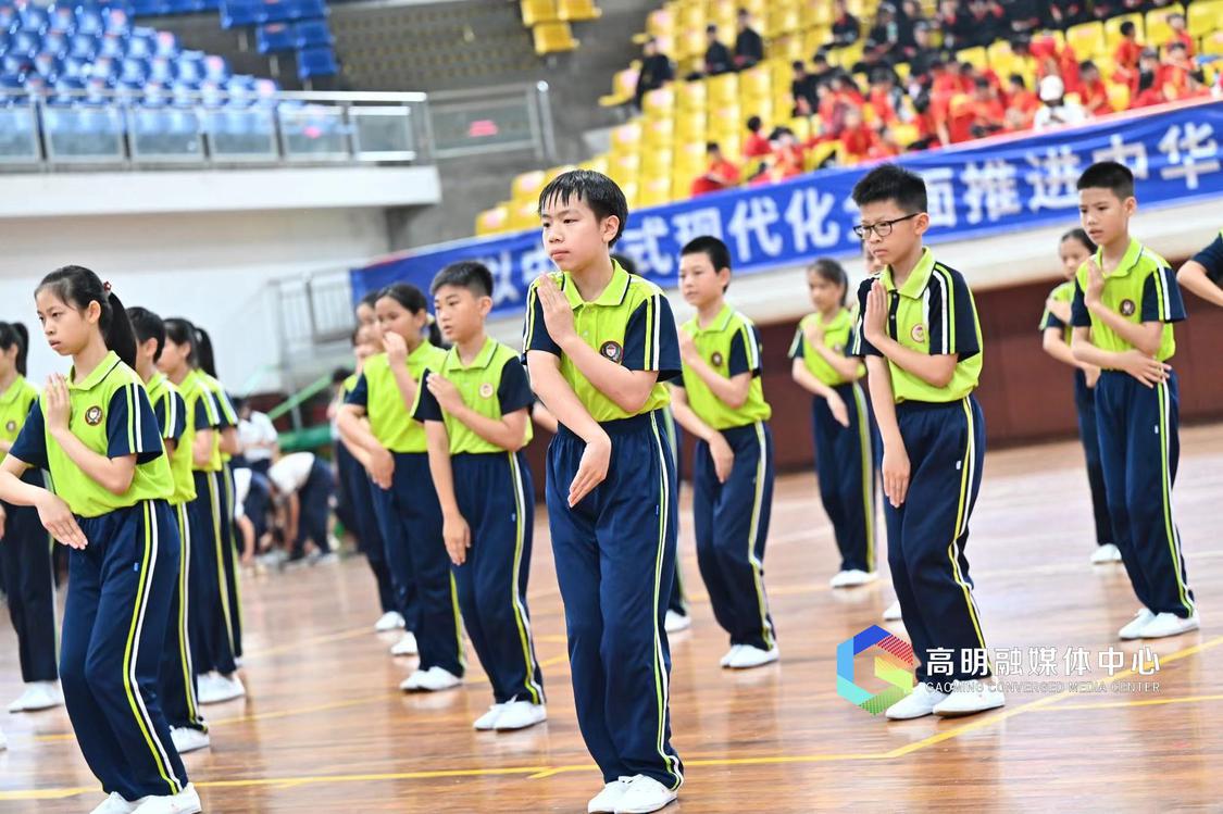 4月27日上午,2024广东省武术进校园咏春拳操大赛在广东华体高明体育馆举行。来自惠州、肇庆、佛山等地近千名中小学生参加了比赛。