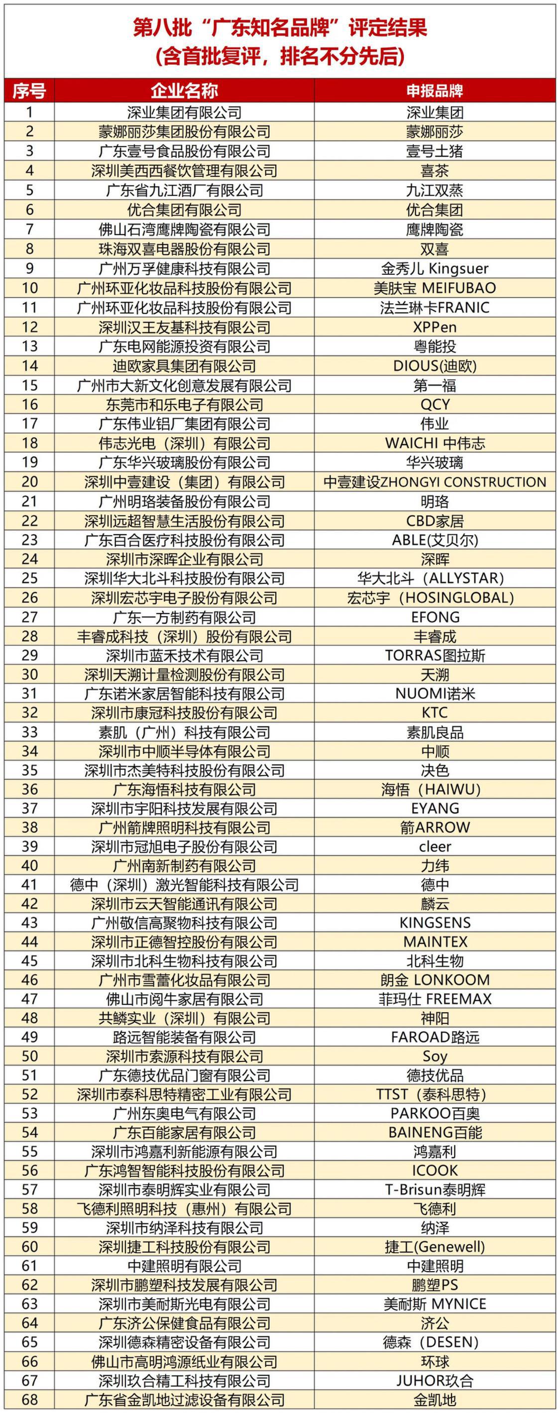 7月17日,广东省企业品牌建设促进会广东知名品牌评价专业委员会公布第八批“广东知名品牌”评定结果,其中共有68个申报品牌获评“广东知名品牌”,佛山有12家企业上榜。