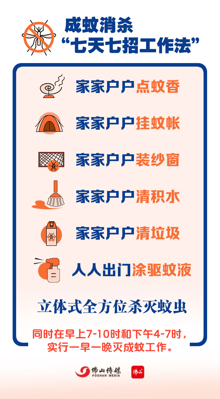 7月31日起,佛山在全市启动为期一周的成蚊消杀重点攻坚行动。全市32个镇(街道)全部村(社区)将重点开展“7天的成蚊消杀”工作。
