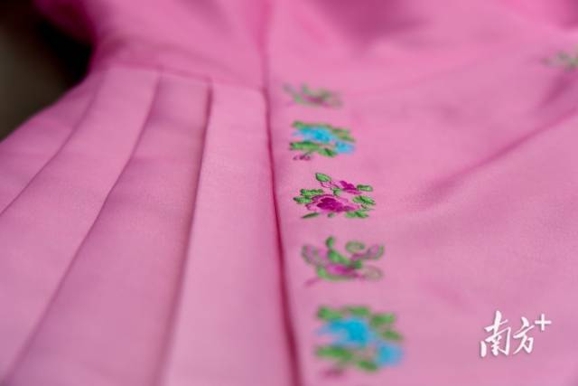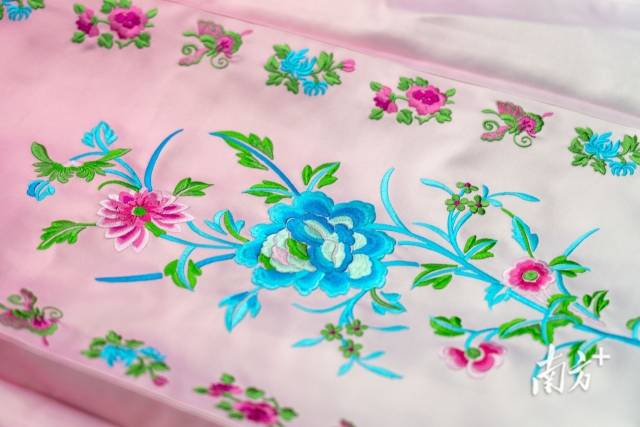 这件以马面裙为核心载体的颁奖礼服,设计灵感来源于粤绣牡丹一枝独秀。十五运会和残特奥会颁奖礼服设计团队主创人员代表曲晶介绍,“粤绣作为中国四大名绣之一,代表着中华文化的瑰宝和精湛技艺,传达了深厚的民族文化内涵。而裙身选取了国花牡丹,既有传统东方神韵,又融入现代审美,盛开的姿态象征着国家的繁荣昌盛和开放包容的大国胸怀。”而裙身上精湛的三蓝绣工艺等元素,则象征着大湾区三地和谐繁荣、开放包容、生态文明的特色。
