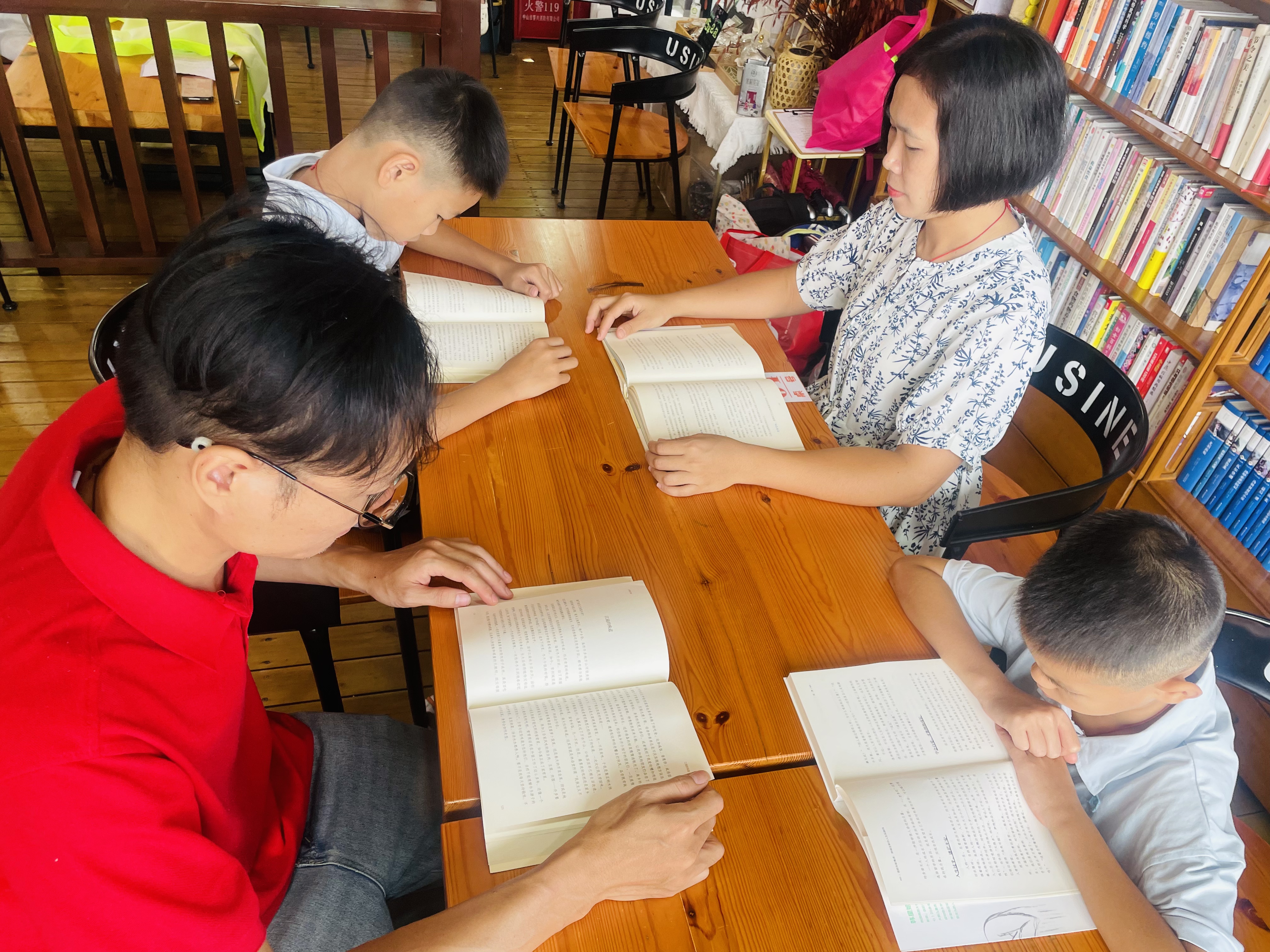 这份感悟让吴秋玲家庭在知识分享的道路上步履不停。她带领家人活跃在各个文化传播的舞台——参与了容桂街道举办的暑假文学公益班的讲座、容里社区的读书分享会、振华社区举办的暑假诗歌公益班、青年坊举办的暑假公益班,向大家分享阅读的乐趣。