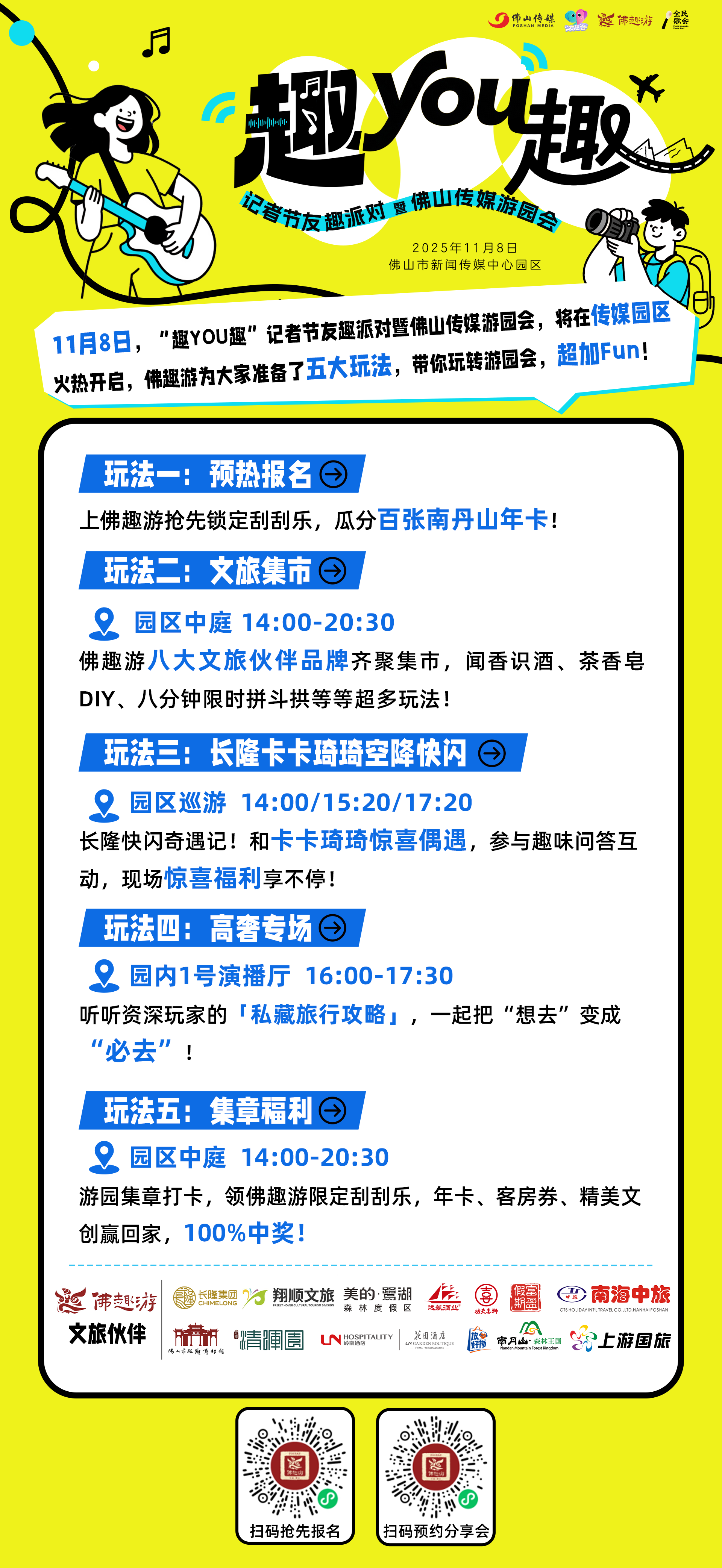 2.“佛趣游”小程序报名“11月8日记者节友趣派对”,预约入园;