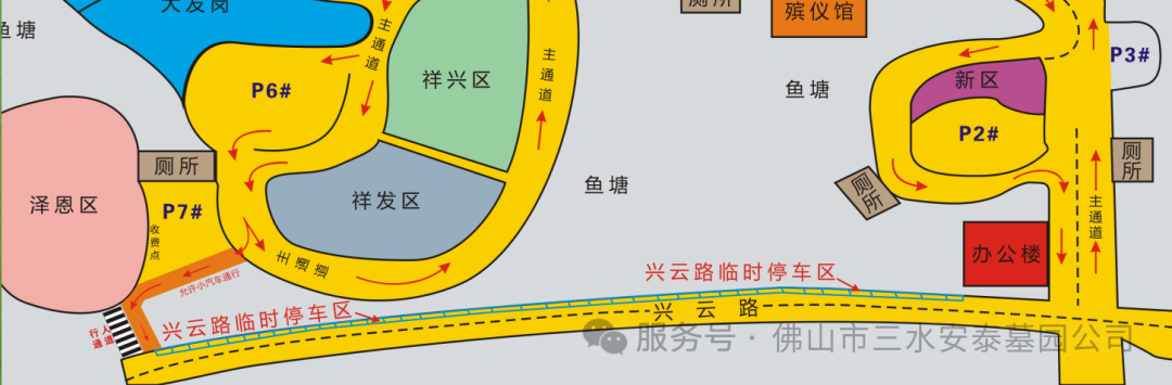 为方便离场,18日、19日安泰墓园在泽恩区新增出园道路,100米可到达兴云路。