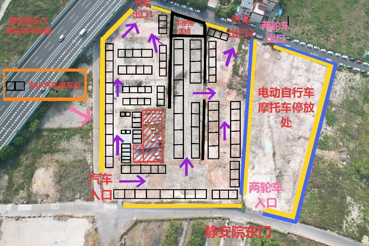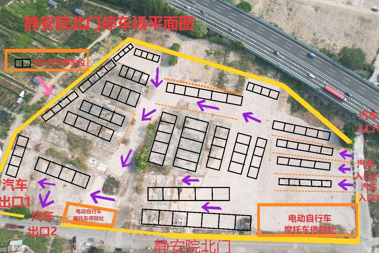 1、静安院内停车场在4月暂停开放,车辆统一停放在静安院北门或东门对面的临时停车场。