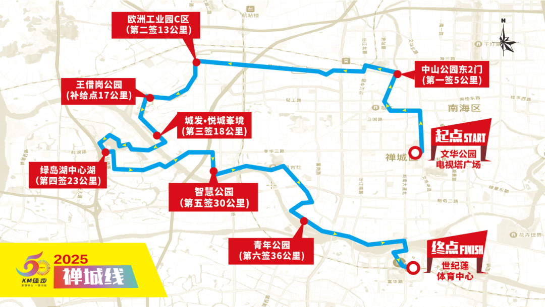 2016年,首届禅城线以文华公园电视塔广场为起点,途经同济涌、中山公园、欧洲工业园C区等标志性区域,设置6个签到点,串联李广海医馆、梁园、祖庙等历史文化地标,同时穿插工业园、交通枢纽等城市功能区,充分展示禅城传统文化与现代工业文明交融互生的城市魅力。