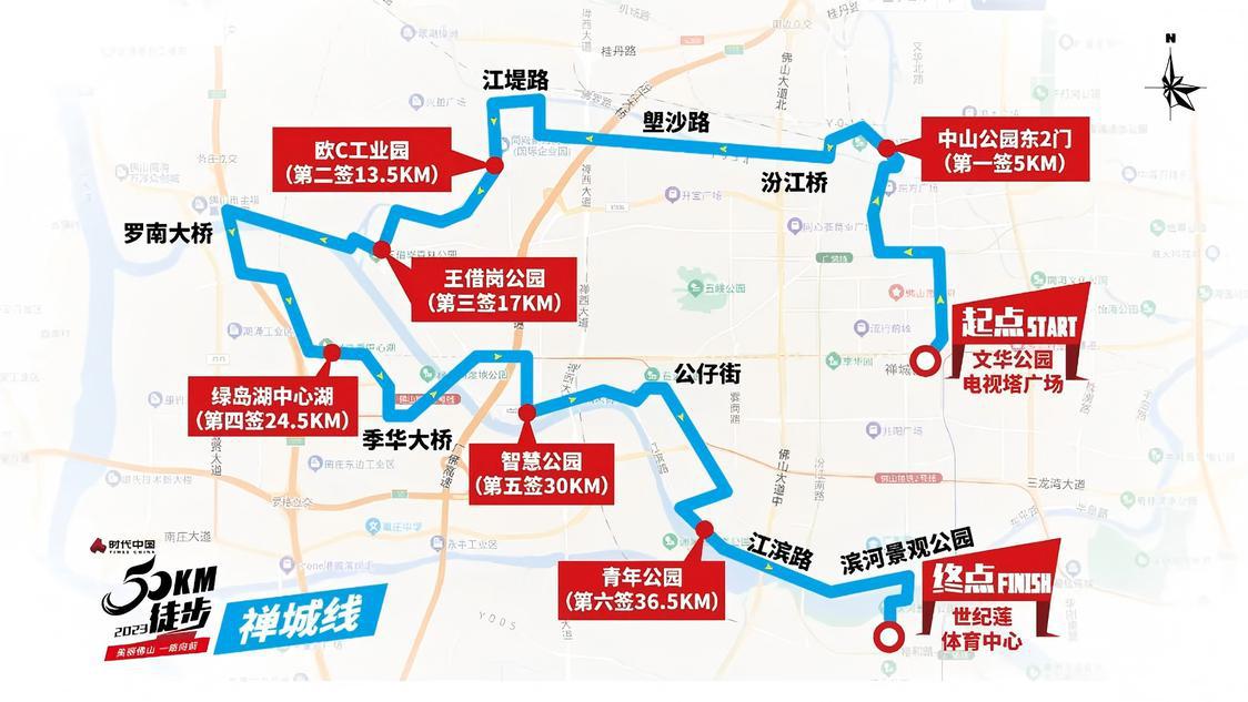 禅城线路作为佛山50公里徒步的五条线路之一,于2016年被推出,并与其他线路共同串联起佛山城市升级精华美景,最终在佛山新城世纪莲体育中心进行“五龙汇聚”,让参与者感受佛山城市升级成果。