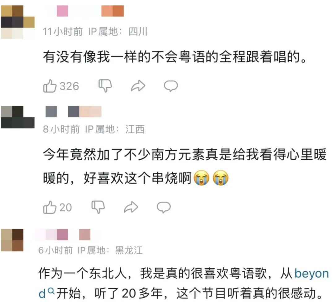 创作团队不断在港风回忆和当代传唱之间,体会不同作品的情感适配度,提炼粤语老歌直击人心的蓬勃生命力。当耳熟能详的《海阔天空》《男儿当自强》《红日》《万水千山总是情》《沧海一声笑》在除夕之夜唱响时,“过瘾”“尽兴”成为许多观众最大的感受。