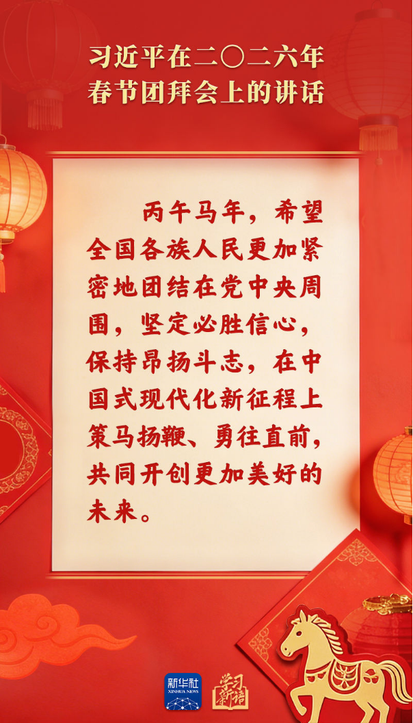 辞旧岁,贺新春。中共中央、国务院14日上午在人民大会堂举行2026年春节团拜会。习近平总书记发表讲话,代表党中央和国务院,向全国各族人民,向香港特别行政区同胞、澳门特别行政区同胞、台湾同胞和海外侨胞拜年。